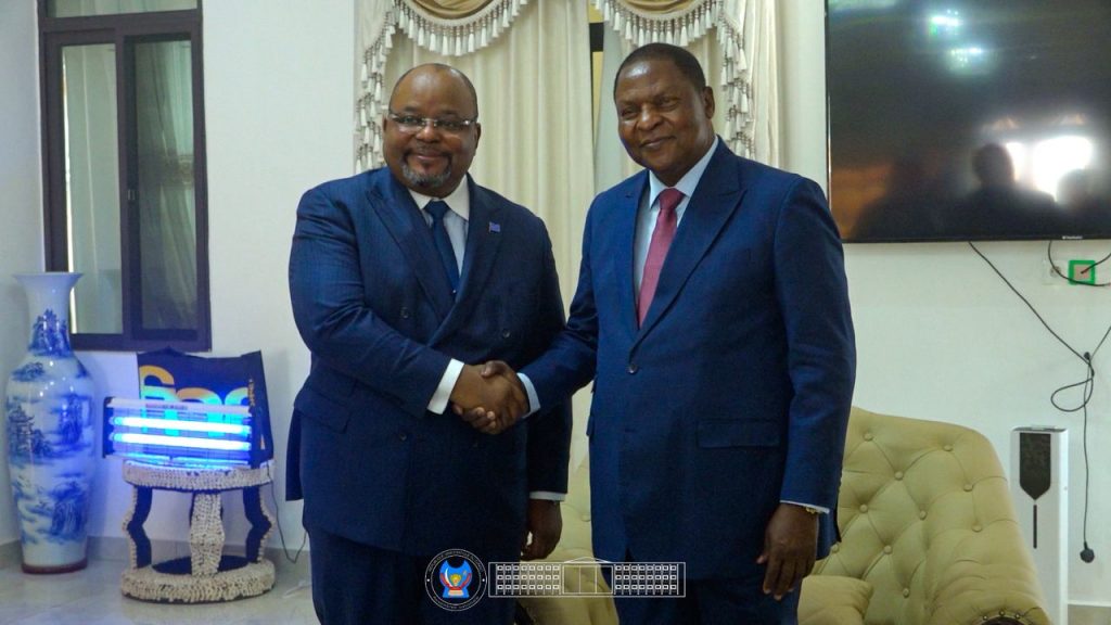 Avant de quitter Bangui, où il a représenté le Président de la République, Son Excellence Félix-Antoine TSHISEKEDI TSHILOMBO, à la cérémonie d’investiture de son homologue centrafricain, Son Excellence Faustin-Archange TOUADERA, le Président de l’Assemblée nationale de la RDC, l’Honorable Aimé BOJI SANGARA, a été reçu en audience par ce dernier.